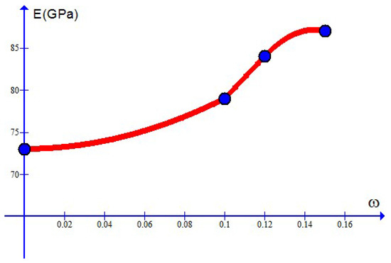 Young’s modulus E changing with the weight percentage (dots for simulation results).