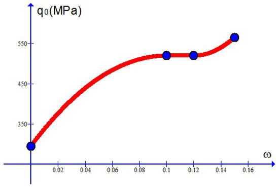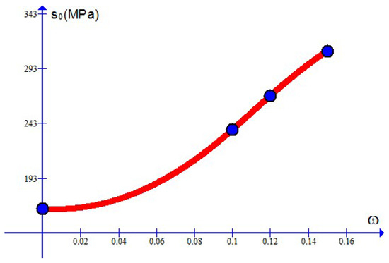 For the case treated here, N is given by 4 and the parameter values at , , , are listed in Table 1 for each parameter . As examples, the curves of the Young’s modulus , the maximum stress limit and the plateau stress are depicted in Figure 11, Figure 12 and Figure 13, separately. The curve of the critical plastic work is of the same shape as the curve and not shown here.