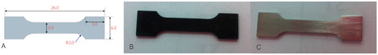 High-purity (99.99%) magnesium was intensified via the bi-axial rolling process to enhance mechanical strength. Magnesium plates were designed (n = 55, 26 × 6 × 2 mm3) for strength measurement (Figure 1), mechanically polished using 1200 grit SiC paper, washed in an ultrasonic water bath, and dried. The method for the hydroxyapatite coating process proposed by Hiromoto et al. [9] was followed: specimens were soaked in 0.5 M ethylenediaminetetraacetic acid calcium disodium salt hydrate (Ca-EDTA) and 0.05 M potassium dihydrogenphosphate (KH2PO4) solution, then heat-processed at 363 K for 2 h. The pH was maintained at 8.9 by adding sodium hydroxide (NaOH) solution. The HA-coated specimens were then washed with distilled water and dried.