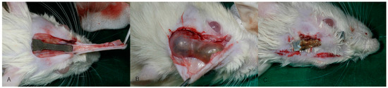 Clinical findings at sacrifice. (A) Normal; (B) Hydrogen gas formation; (C) Wound dehiscence and plate exposure.
