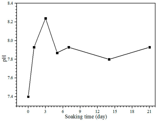 The pH of the SBF solution after each day of the soaking.