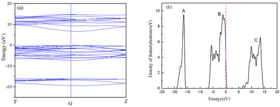 3.1. Band Structure and Density of States