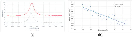 - Calizo, I.; Balandin, A.A.; Bao, W.; Miao, F.; Lau, C.N. Temperature dependence of the Raman spectra of graphene and graphene multilayers. Nano Lett. 2007, 7, 2645–2649. [Google Scholar] [CrossRef] [PubMed]