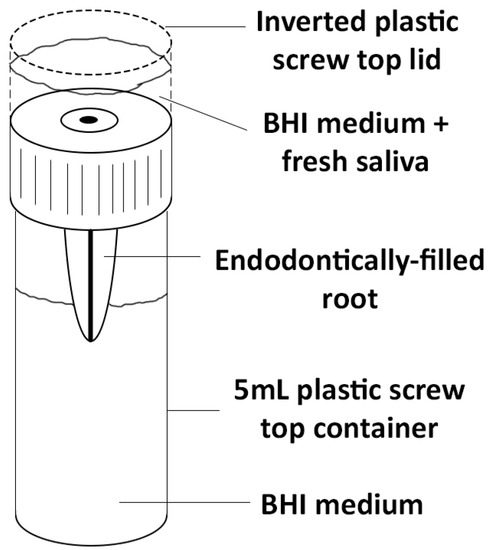 - Rechenberg, D.-K.; Thurnheer, T.; Zehnder, M. Potential systematic error in laboratory experiments on microbial leakage through filled root canals: An experimental study. Int. Endod. J. 2011, 44, 827–835. [Google Scholar] [CrossRef] [PubMed]