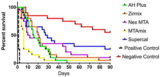 | Material | AH Plus | Zirmix | Nex MTA | MTAmix | Supercal | Positive Control | Negative Control |