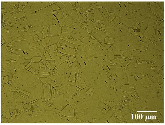 In this research, a round bar (120 mm diameter by 500 mm length) of an austenitic stainless steel AISI 304 was investigated during turning (finishing operation). The chemical composition and mechanical properties of the material are shown in Table 1. To reveal the workpiece microstructure, a sample of the AISI 304 was prepared, polished and etched with Glycergia solution (1 mL Glycerol + 20 mL hydrochloric Acid (HCl) + 20 mL HNO3). The microstructure of the AISI 304 workpiece was characterized using a Nikon ECLIPSE IV 100 microscope (Nikon Canada Inc., Mississauga, ON, Canada) equipped with UC30 camera (see Figure 1). The turning process was performed using an OKUMA CNC Crown L1060 lathe (OKUMA, Charlotte, NC, USA) with 15 kW of power and an OKUMA OSP-U10L controller. The cutting tool (Manufacturer: Kennametal) used for the experiments was an uncoated cemented carbide insert with WC/6%Co, which promotes BUE formation due to adhesion tendency to stainless steels. The designation of the insert is ISO CNGG432FS with the following geometry characteristics: back rake angle, λ0 = 5°; clearance angle, α0 = 7°; wedge angle, β = 78°; edge radius, r = 10.5 µm and nose radius, Rε = 0.8 mm. The turning tests were conducted for finishing operation with a cutting speed of 60 m/min, feed rate of 0.1 mm/rev, and depth of cut of 0.5 mm. The cutting speed vc = 60 m/min was selected to ensure BUE formation. Higher cutting velocities (vc > 60 m/min) lead to less provoked BUE formation, whereas lower cutting velocities (vc < 60 m/min) result in wear rates that are too low for reasonable wear tests. The cutting tests were performed under wet condition to reduce friction and heat generation during the cutting process. The cutting fluid was applied at a flow rate of 11 L/min via a nozzle positioned directly above the cutting tool and directed toward the tool tip. The cutting fluid chosen was semi-synthetic coolant-CommCool™ 8800, manufactured by the Wallover Company (Harrow, ON, Canada), at a concentration of 7%, typically used with stainless steel alloys.