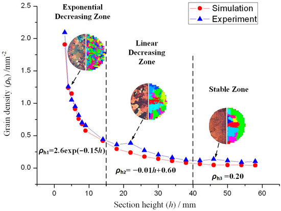 Comparison of grain density changes with section height during experiment and simulation.
