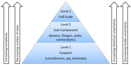 In the design process of wind turbine blades, tests on several scales can be performed in order to measure the relevant material properties and to check the accuracy of the computational design models used to estimate the load bearing capacity, see Figure 7. However, currently only coupon and full-scale tests are required in the IEC 61400 standard for wind turbines in order to certify wind turbine blades.