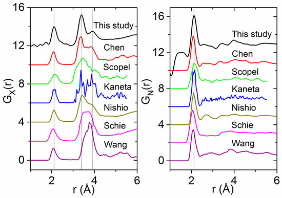 - Keen, D. A comparison of various commonly used correlation functions for describing total scattering. J. Appl. Cryst. 2001, 34, 172–177. [Google Scholar] [CrossRef]