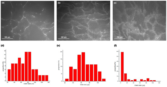 Microstructures of Equal Channel Angular Extrusion (ECAE)-processed Mg-Sn alloys: (a) one-pass (1N); (b) two-pass (2N); and (c) four-pass (4N), and grain size distribution of ECAE-processed Mg-Sn alloys calculated from the microstructure images: (d) one-pass (1N); (e) two-pass (2N); and (f) four-pass (4N).