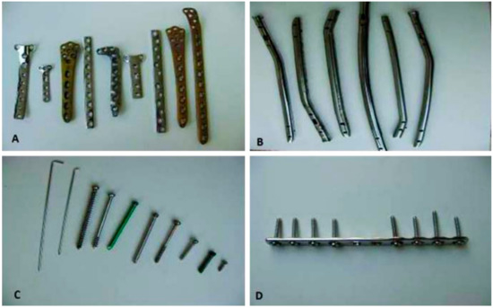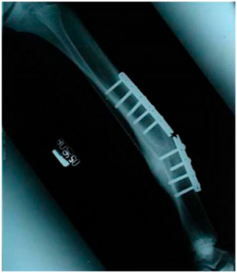 - Triantafyllidis, G.K.; Kazantzis, A.V.; Karageorgiou, K.T. Premature fracture of a stainless steel 316L orthopaedic plate implant by alternative episodes of fatigue and cleavage decoherence. Eng. Fail. Anal. 2007, 14, 1346–1350. [Google Scholar] [CrossRef]
