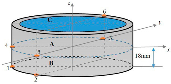 where is the friction condition index, indicating friction (=1) or not (=0); is the position index, indicating the punch (=1) or the shot sleeve (=2). The coordinates of the sample points are shown in Figure 1, which shows the thermocouples 1–6 installed on the inner wall of the shot sleeve. Section A, which has the same altitude as the top surface of the punch, is also the lowest surface of the melt. Sections B and C are below and above a proper distance of section A. Refer to You et al. [1] for details about the squeeze casting process and the experimental measurement.