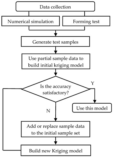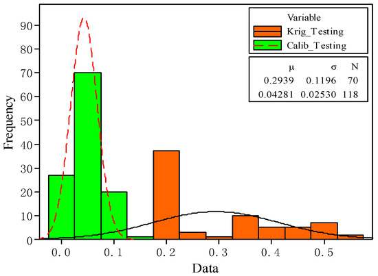 - Using partial sample data, build the appropriate kriging model to make and fit well. Then, check and calibrate the model with the other sample data. Thereafter, iterative computations are performed until the calibration model meets the precision requirements. The flow chat is shown in Figure 2.