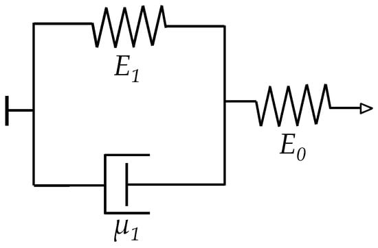 where ρ1, ρ2 are the electrical resistivity of the polymer composite and the metal electrodes, respectively, H is the Meyer hardness of the softer element, and E0, E1, μ1 are the parameters of a Zener element as shown on Figure 4. Considering that the Kalantari et al. model [22] is based upon previous work from Zhang et al. [21], the former also required that experimental measurements of the electrical resistance were performed, see the R0 symbol in Equation (14). The symbols D, θ have the same meaning in both Equations (12) and (14). The usage of force, F, rather than stress, σ, has been preferred by Kalantari et al. [22]. The relationship between both magnitudes of stress and strain was previously given on Equations (7) and (8).