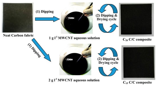 Schematic procedure to manufacture C/C composites by dip-coating technique.