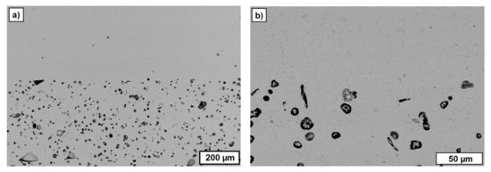FESEM images of cross-sections of a test component with CERETAN MA 7008 as the PFA. (a) Overview; (b) detail.