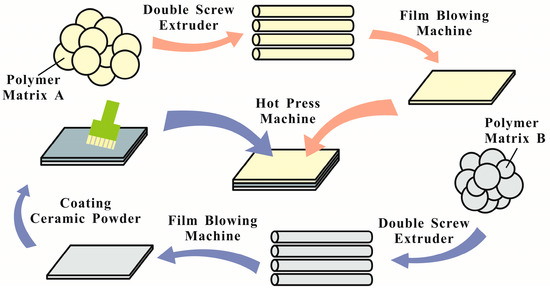 As a result, the sandwiched structure may have eliminated the stress concentration between the ceramic powder and the polymer matrix, which could have caused a sharp drop in the mechanical performance of the composite films. The morphologies of the samples indicate that the ceramic powder was evenly dispersed between the two films. Since a film must have uniform morphology to ensure optimal performance, this microstructure can lead to a well-proportioned distribution of far-infrared rays and guarantee accuracy in emissivity. On the other hand, a few specks can be seen in Figure 3, attributed to the separation and presence of solid impurities, which had no effect on the infrared emission performance.