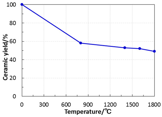Composition change of EtOSZ through 800 °C-pyrolysis and subsequent heat treatment up to 1800 °C in N2.