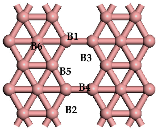 The optimized atomic structure of pure β12-borophene. The alphanumeric characters on the graph represent the corresponding atoms.