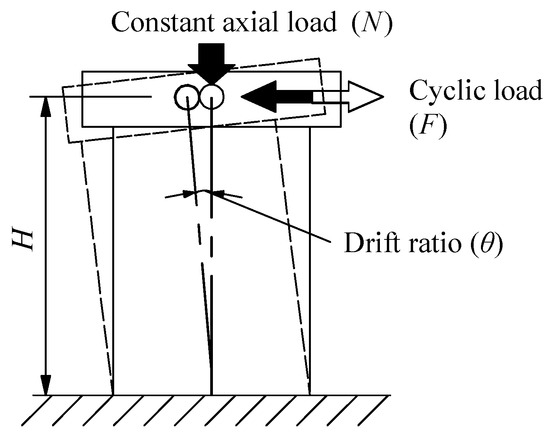 where, Ki is the average stiffness of the minus and plus loadings of the ith cycle; Fi+ is the maximum load of the plus loading of the ith cycle; Fi− is the maximum load of the minus loading of the ith cycle; Δi+ is the maximum drift ratio of the plus loading of the ith cycle; Δi− is the maximum load of the minus loading of the ith cycle.