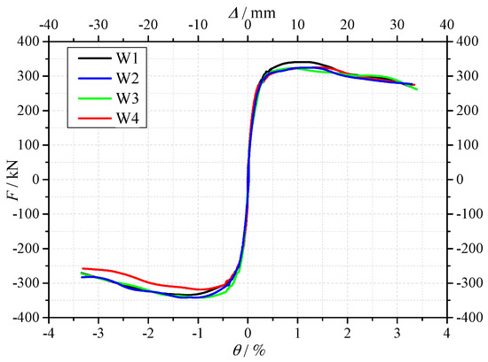 The skeleton curves of the specimens W1–W4.