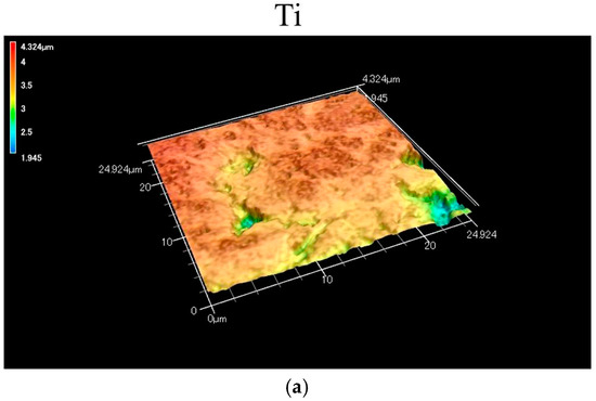 Three-dimensional images of the Ti and CA-coated specimens using a shape analyzer laser microscope: (a) Ti, (b) ASC-5/H, (c) ASC-25/H.