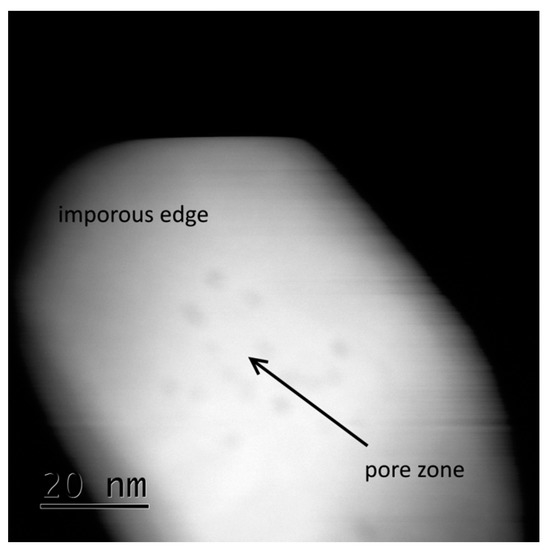 In both compositions, before calcination and after calcination at 973 K, the average pore size was approximately 9 nm. According to a not-shown analysis of variance (ANOVA) with a significance level of 0.05, there is no statistically significant void size variation between before calcination and after calcination at 973 K (p value of 0.32). There is also no statistically significant difference in the mean void size between 7 YSZ powder and 8 YSZ powders (p value of 0.635). For a calcination temperature of 1373 K, smaller pores were difficult to measure, since their boundaries were not well defined, as demonstrated in Figure 4.