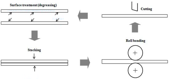 Diagrammatic illustration of the accumulative roll-bonding (ARB) process.