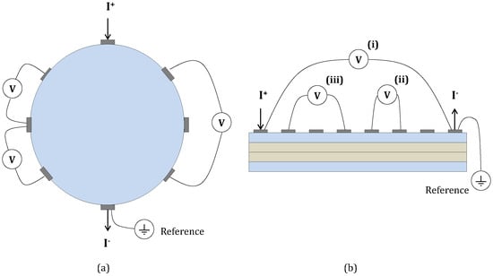 Electrical Resistance Tomography (ERT): (a) General example; (b) in a laminate.