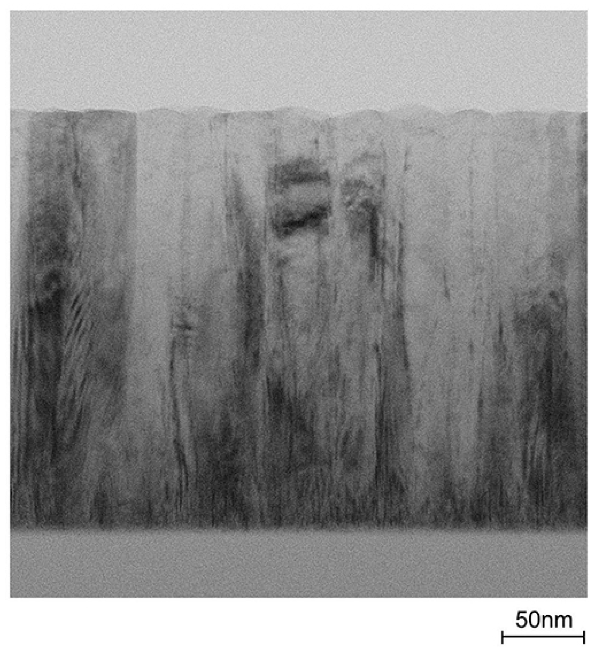 A cross-sectional TEM image of an as-deposited ZnO:Al (2.0 wt %) film.