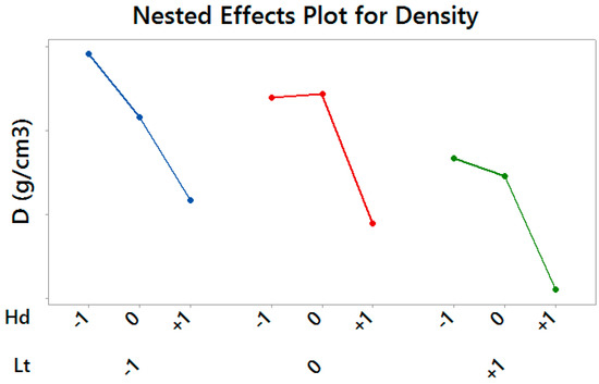 Nested Effects Plot for Density—vertical scale unit 0.01 g/cm3.