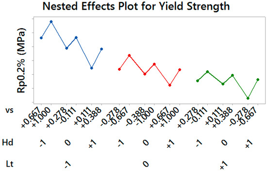 Nested Effects Plot for Yield Strength—vertical scale unit 10 MPa.