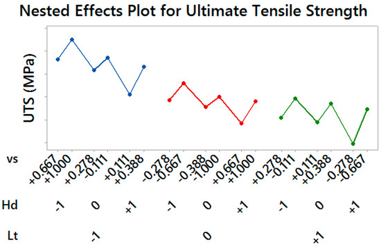 Nested Effects Plot for Ultimate Tensile Strength—vertical scale unit 10 MPa.