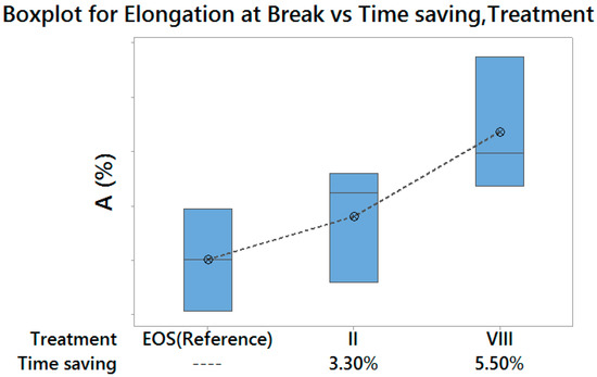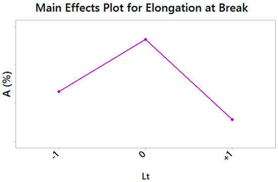 Main Effects Plot for Elongation at Break—vertical scale unit 1%.