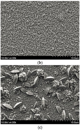 Surface morphology of the BiTe deposition potentials: (a) −40 mV; (b) 20 mV; and (c) 60 mV.
