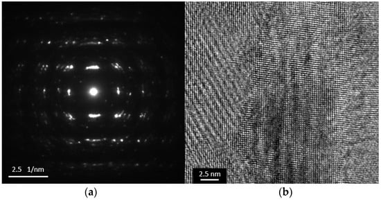 (a) SAED pattern; and (b) HRTEM observation between the boundaries of the Bi2Te3 sample fabricated using pulsed deposition.