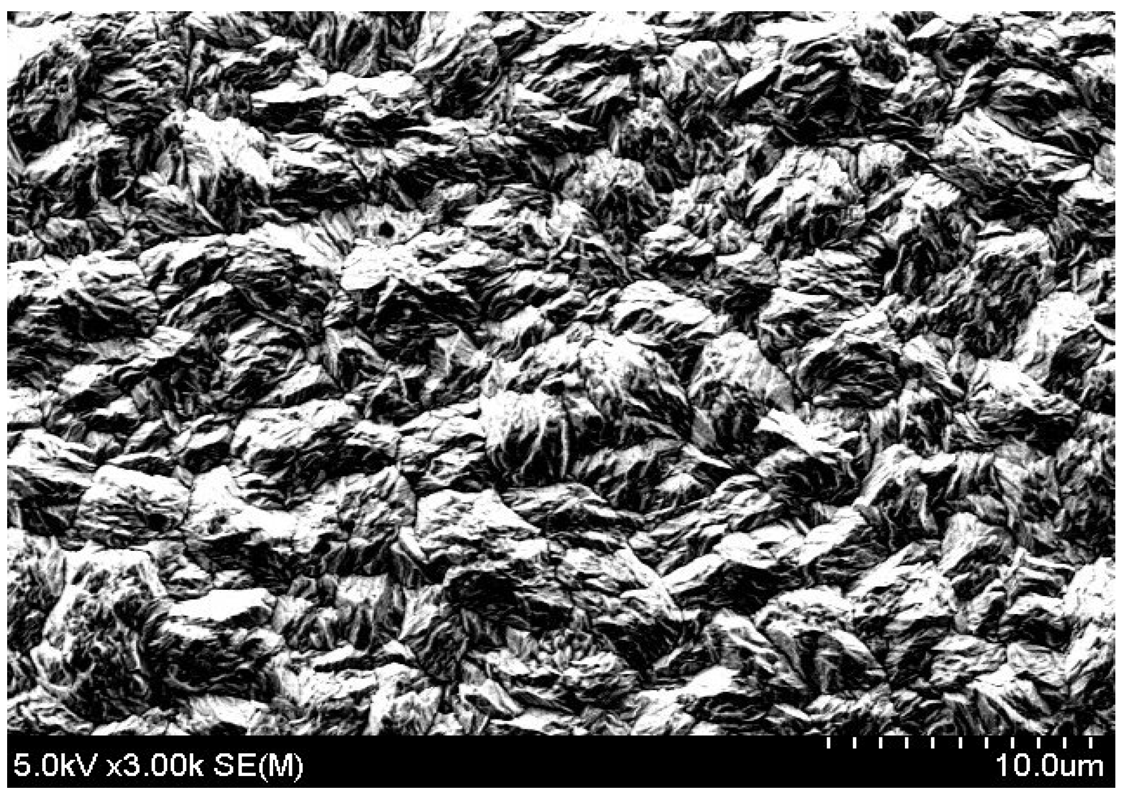 SEM image of Bi2Te3 film surface formed by pulsed deposition.