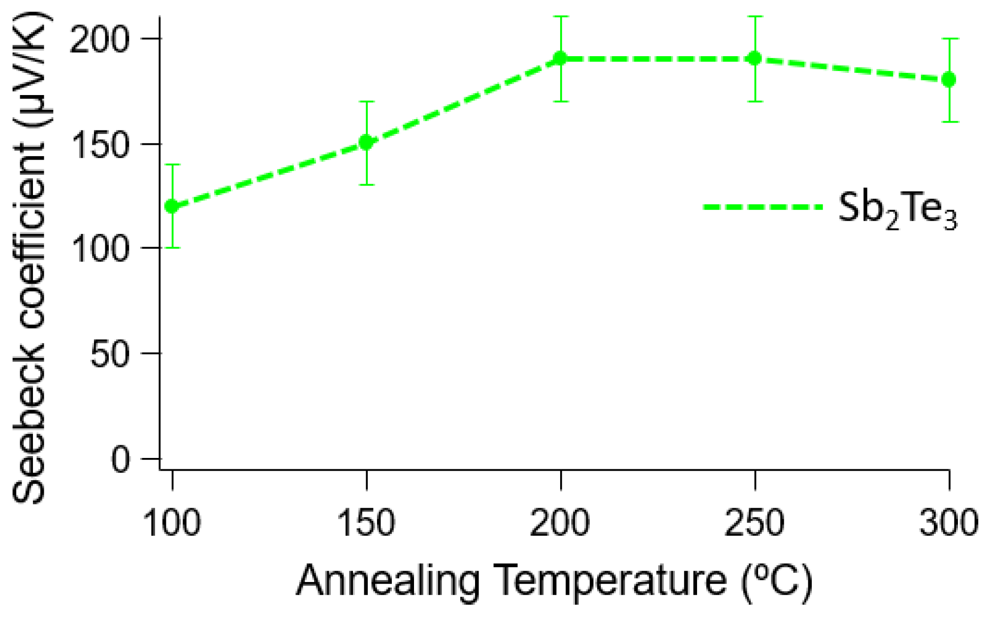 Dependence of the Seebeck coefficients from the Sb2Te3 on the annealing temperature.