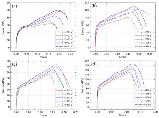 | Composites | Strain Rate (s−1) | Yield Strength (MPa) | Compressive Strength (MPa) | Failure Strain |