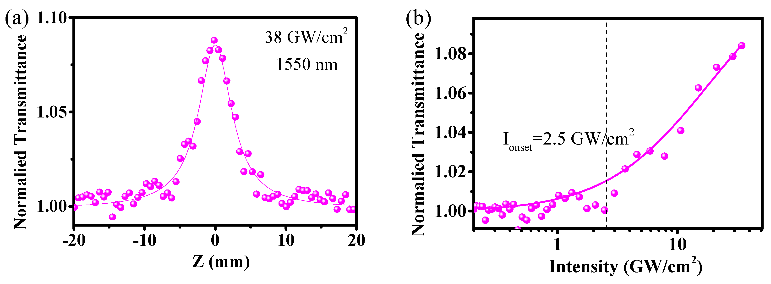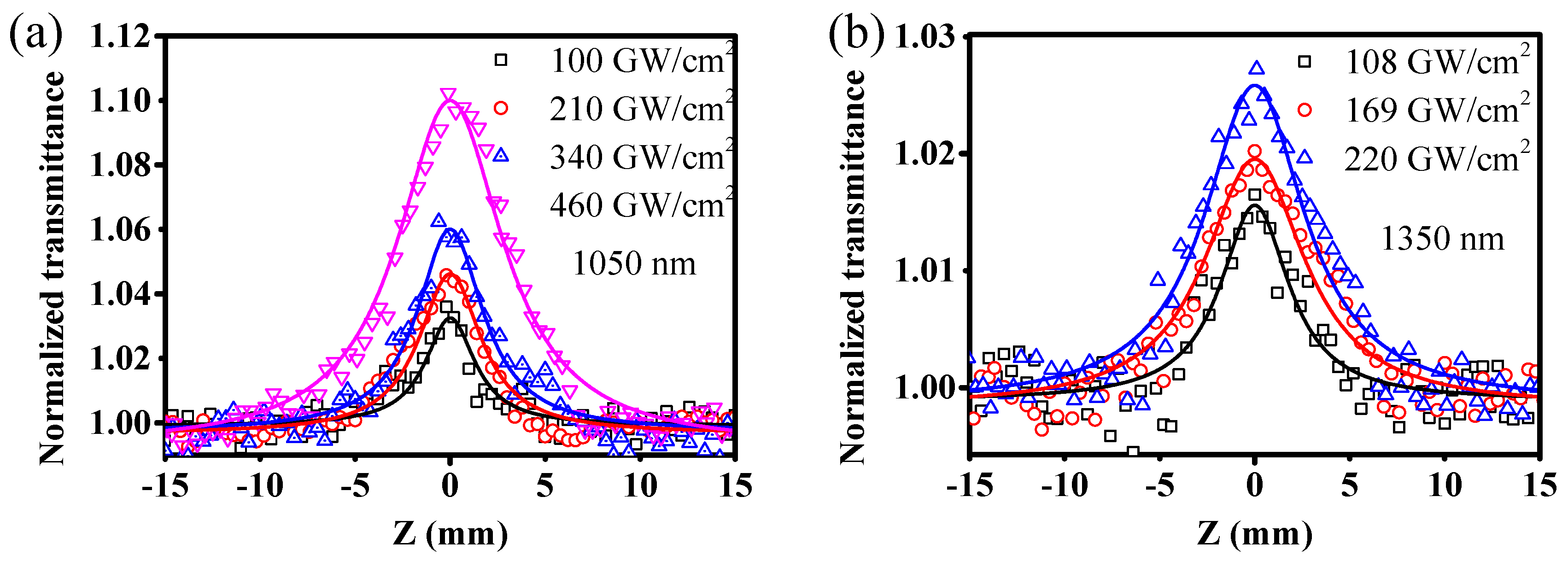 3.2. Nonlinear Optical Property Measured by Z-Scan Technique