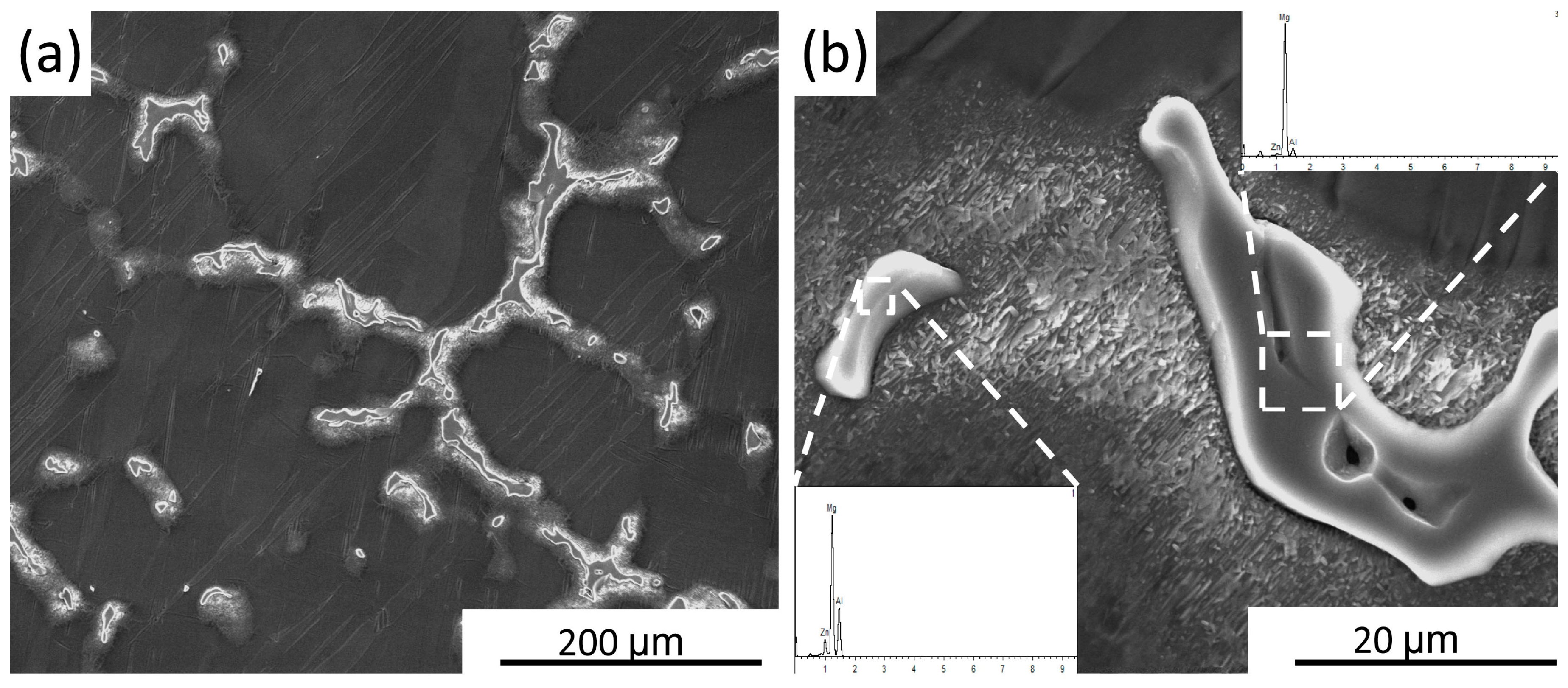 - Chai, F.; Zhang, D.; Li, Y.; Zhang, W. Microstructure evolution and mechanical properties of a submerged friction-stir-processed AZ91 magnesium alloy. J. Mater. Sci. 2015, 50, 3212–3225. [Google Scholar] [CrossRef]