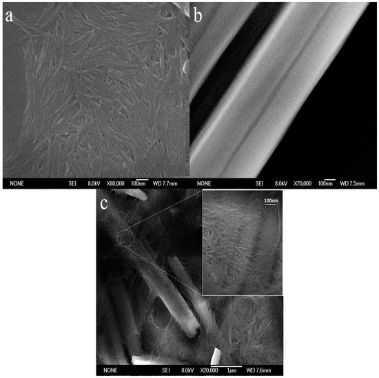 Scanning electron microscope (SEM) images were taken on a JEOL JSM-6700F SEM instrument (Japan Electron Optics Laboratory Co. Ltd., Tokyo, Japan), the testing voltage was 12 KV, and the magnification was 2000–50,000 times.