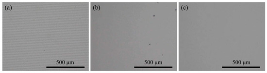 The surface quality was the key parameter for most optical systems. An optical microscopy by Nikon Epiphot 300 (Nikon, Tokyo, Japan) was employed to examine the topography and characteristics of the separated surface. A Taylor Hobson CCI lite with a 20× objective and full resolution was used to examine the surface roughness and spatial frequency to analyze the surface texture. Material removal rate (MRR) was tested by height-measuring equipment. All experiments were carried out at 20 °C and 40% RH.