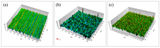 The microstructures are shown in Figure 5. The results showed that the surface of the KDP crystal polished by SPDT became flatter after the processes of CMP-KDP aq/O and CMP-W/O. In addition, the smoothest surface was obtained by CMP-KDP aq/O. The surface RMS roughness was reduced from 4.6 nm by SPDT to 3.1 nm after polishing with W/O or 1.5 nm after polishing with KDP aq/O (as shown in Table 1). The result of 3.1 nm for the W/O microemulsion was different from that of Reference [14], due to different polishers, different sample sizes, and different polishing parameters (press or movement trace) [16]. It showed that KDP aq/O in a decanol/Triton X-100/KDP aq. system is a promising CMP solution for KDP crystals, which reduced the surface roughness by wiping off ripples from the SPDT. Meanwhile, KDP aq/O prevented the formation of corrosion pits.