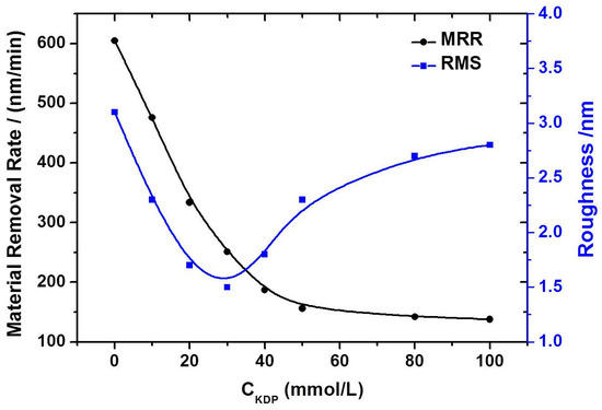 Material removal rate and roughness comparison with different cKDP (from 0 mM to 100 mM).