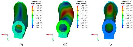 The FE modes 1–3 at 650 Hz (a); 677 Hz (b); and 709 Hz (c) performed on the AFS ram.