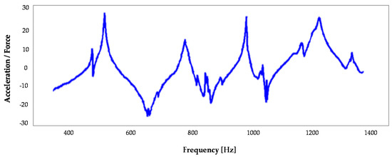 Figure 7 illustrates the frequency response function (FRF) of the AFS structure. FRF is a transfer function, expressed in the frequency domain. It defines the structural response to the applied force as a function of frequency, describing the relationship between the displacement and the point of the applied load (centre of the ram). A preliminary investigation shows a mismatching of the first modes between the numerical analysis and the experimental tests. In fact, the first two modes of the tests occur at 441 Hz and 483 Hz, while the FE simulation highlighted these modes at 650 Hz and 677 Hz. This fact is due to the constraints’ interaction with the support structure of the test bench and they could not be considered in the simulation. In any case, these modes are not important for the scope of this study; in fact they are breathing modes and do not influence the tool tip displacement.