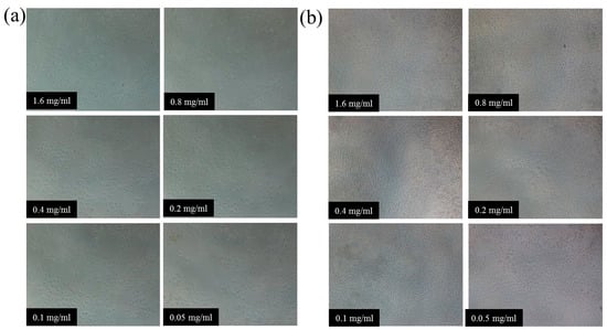 The micrographs of NIH3T3 cell distribution under the different concentrations of gel-3 samples: (a) cultivation for 24 h; (b) cultivation for 72 h.