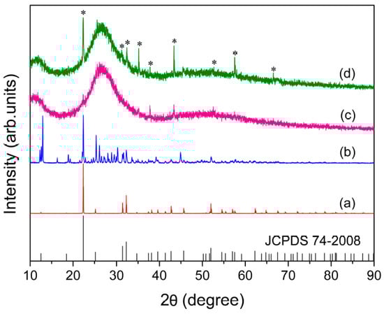 The structure of crystalline and amorphous states of the samples synthesized were characterized by powder X-ray diffraction, which was performed on a D8 ADVANCE powder diffractometer (Bruker AXS, Karlsruhe, Germany), using Cu Kα radiation (λ = 1.5418 Å) with a step size of 0.02°.