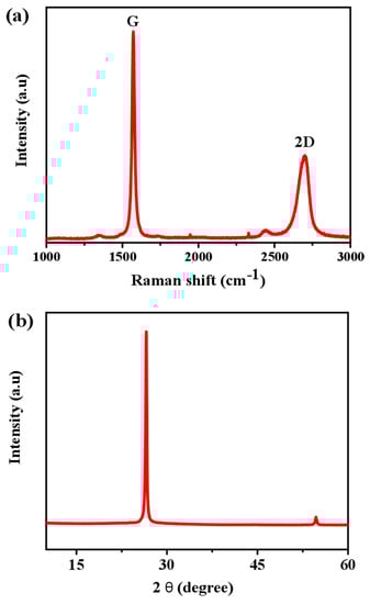 (a) Raman spectroscopy and (b) XRD of GF with Cu-Ka radiation (l ¼ 0.154 nm) operated at 40 kV and 40 mA.